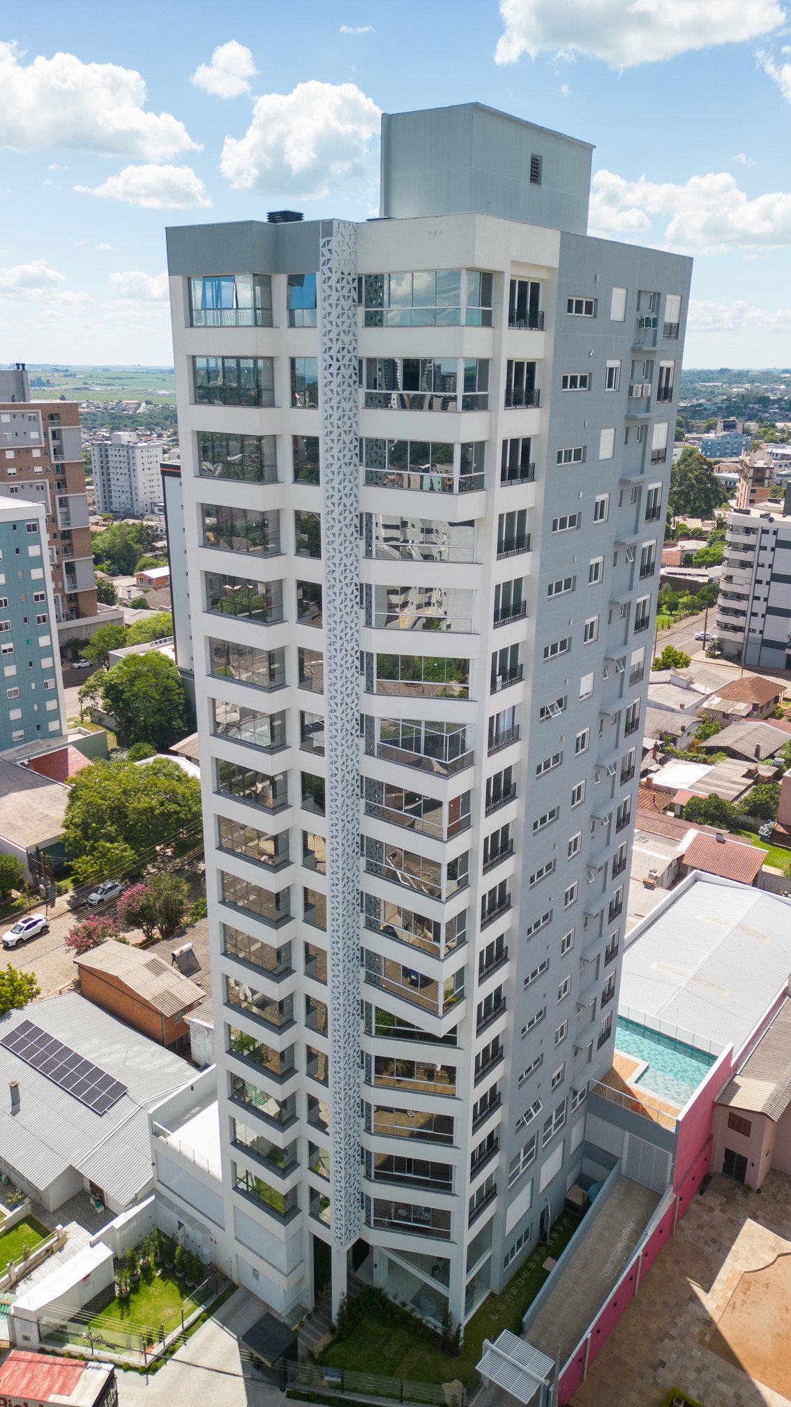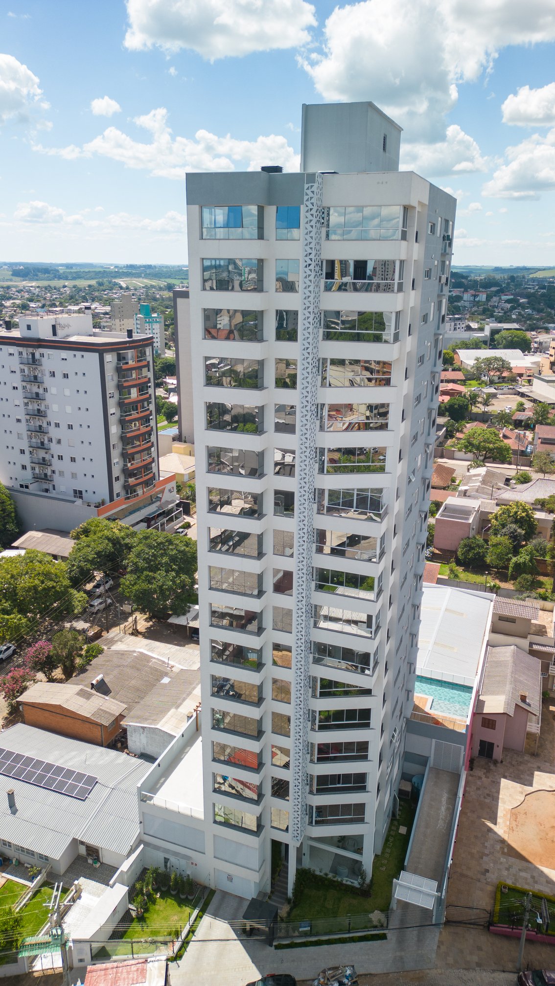 - Esquadrias: Alumínio de alta performance fornecido pela Liv Esquadrias, com acabamento anodizado ou pintura eletrostática.